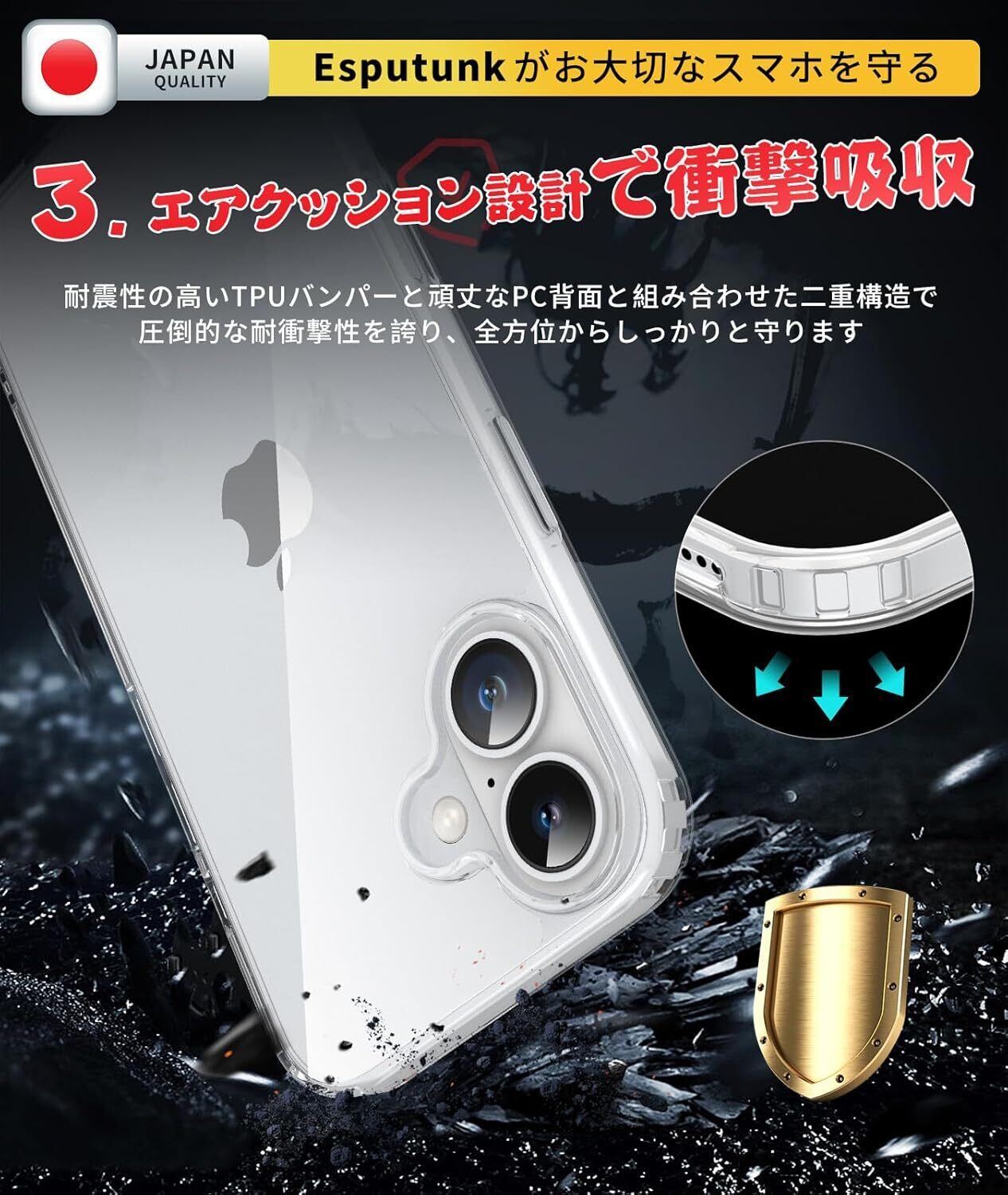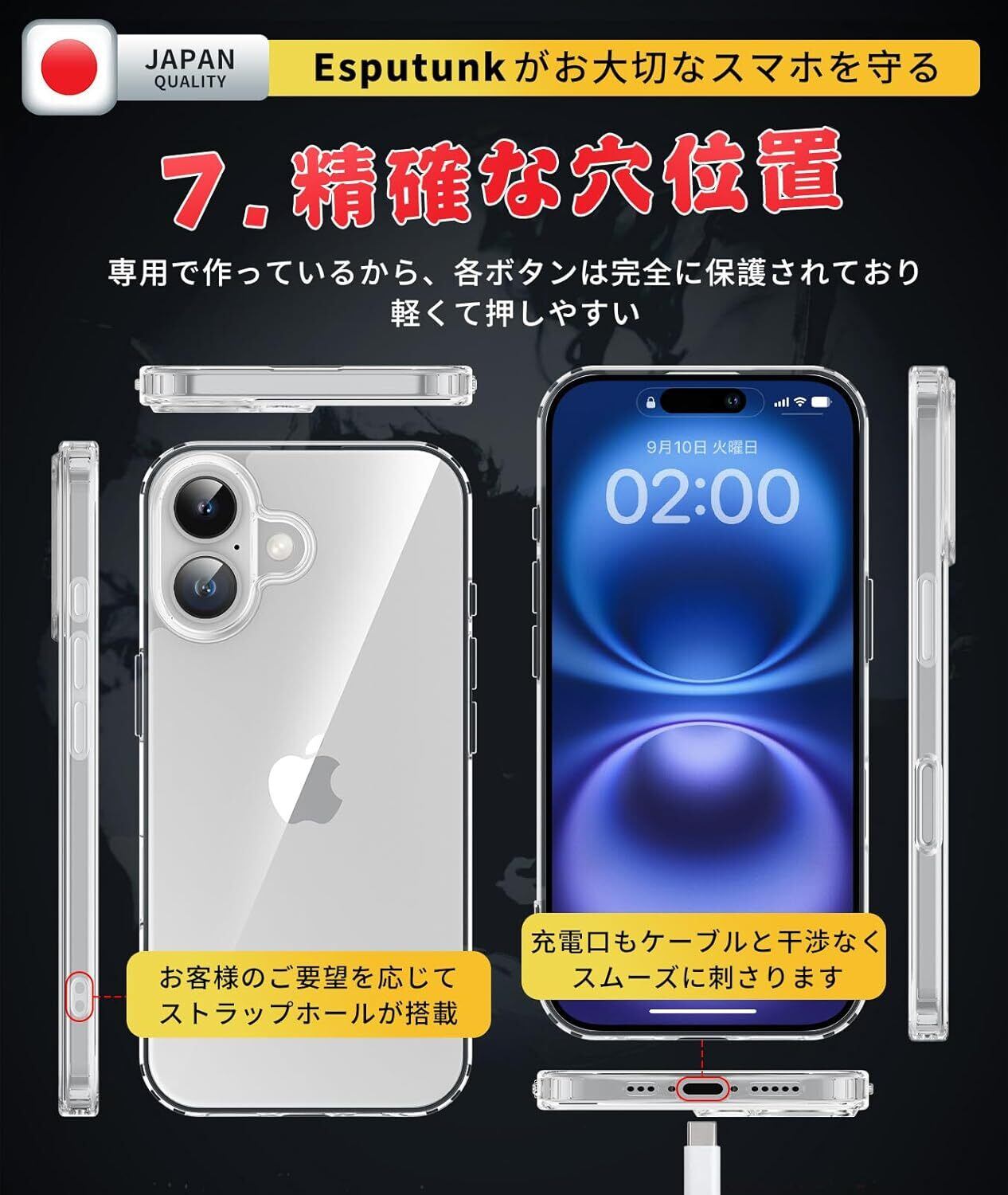 【必ずお読みください】本製品はiPhone16対応透明ケースです。ご希望の数は在庫数上の場合はどうぞ弊店にてお問い合わせください。【Esputunk製品保証の概要】:永久保証について、初期不良など万一この期間中に製品がご利用頂けなくなった場合は、お客様からのお問い合わせ内容に応じて代替品交換・返金対応を提供致します。(お一人様につき1回限り)