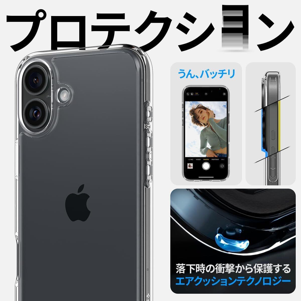 【18年社歴の技術力】Spigen iPhone 16 ケース クリア 耐衝撃 ストラップホール 黄変防止 バンパー 米軍MIL規格 ウルトラ・ハイブリッド ACS08197 (クリスタル・クリア)