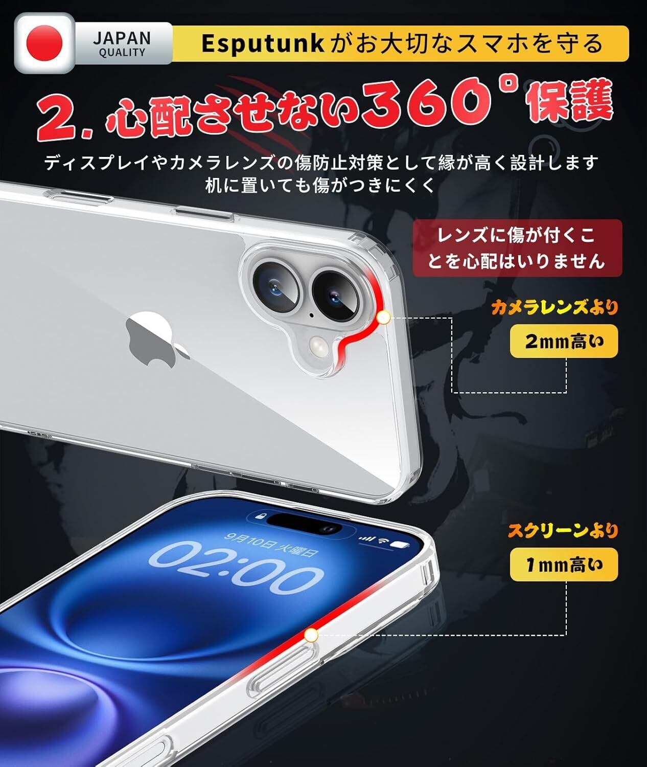 【必ずお読みください】本製品はiPhone16対応透明ケースです。ご希望の数は在庫数上の場合はどうぞ弊店にてお問い合わせください。【Esputunk製品保証の概要】:永久保証について、初期不良など万一この期間中に製品がご利用頂けなくなった場合は、お客様からのお問い合わせ内容に応じて代替品交換・返金対応を提供致します。(お一人様につき1回限り)