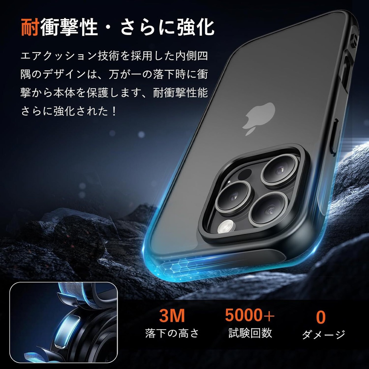 Seefox iphone 16 Pro ケース【2024年9月発売】iphone16Pro スマホケース 半透明 マット感 アイフォン16 Proケース 全面保護 耐衝撃 擦り傷防止 滑り止め 指紋防止 黄変防止 軽量 米軍MIL規格取得 いphone16 Pro ケース 対応 6.3インチ (マットブラック)/kgB0DCZ7YMC5