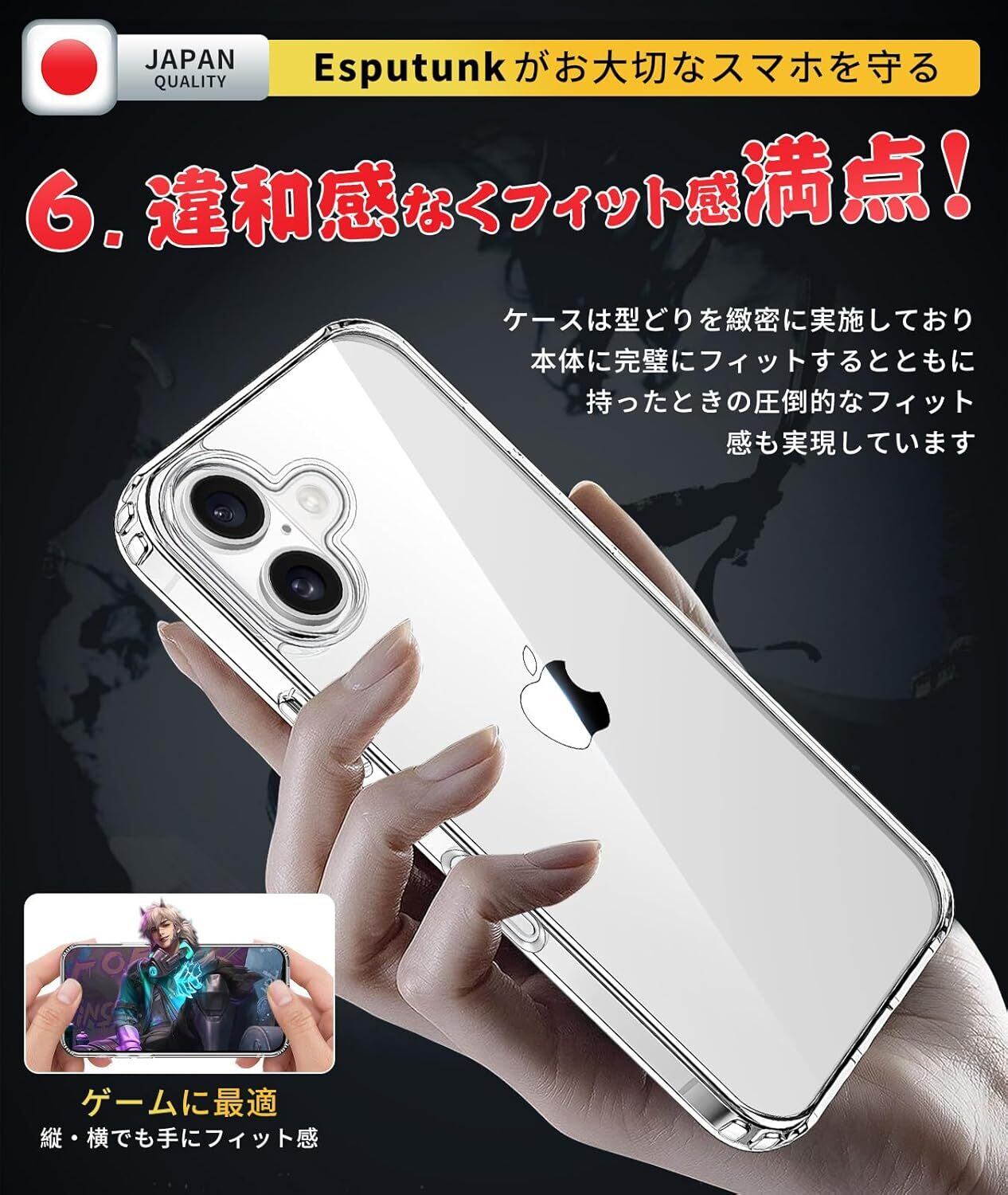 【必ずお読みください】本製品はiPhone16対応透明ケースです。ご希望の数は在庫数上の場合はどうぞ弊店にてお問い合わせください。【Esputunk製品保証の概要】:永久保証について、初期不良など万一この期間中に製品がご利用頂けなくなった場合は、お客様からのお問い合わせ内容に応じて代替品交換・返金対応を提供致します。(お一人様につき1回限り)