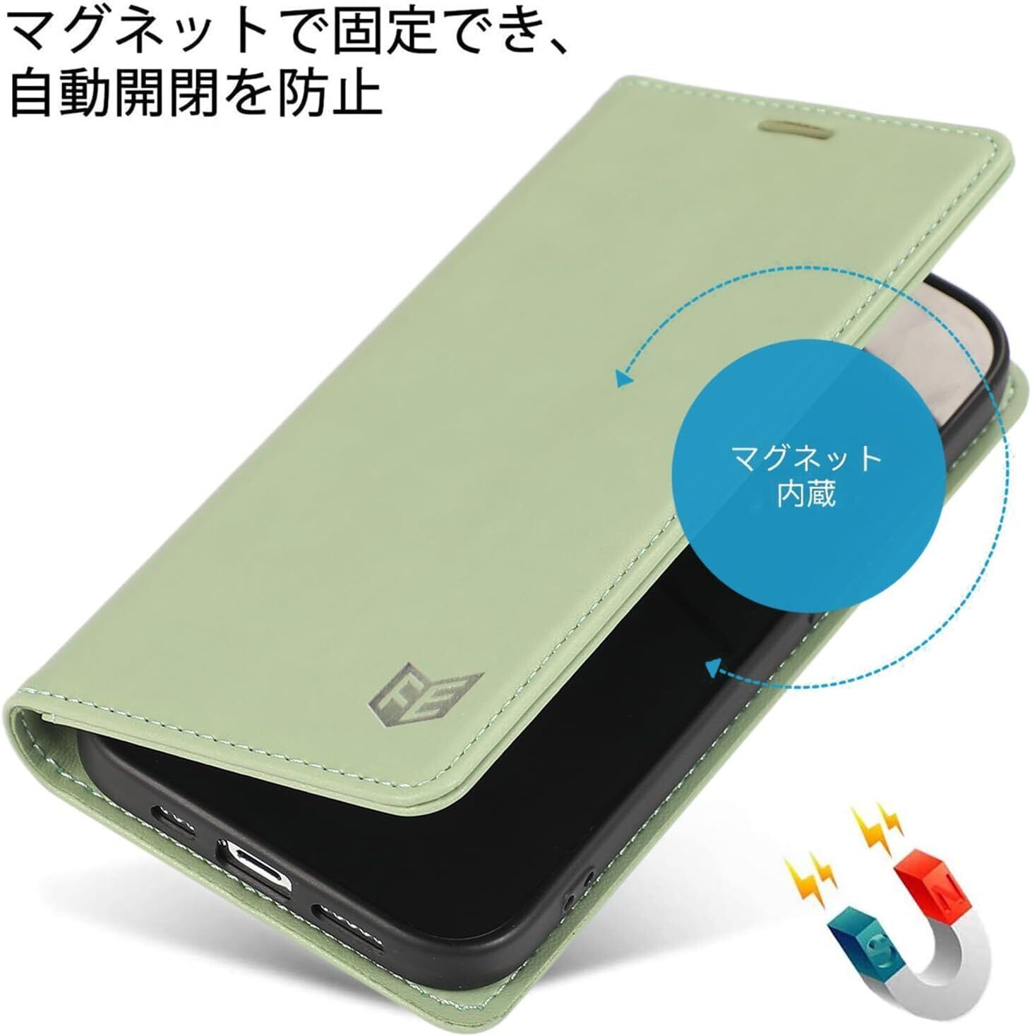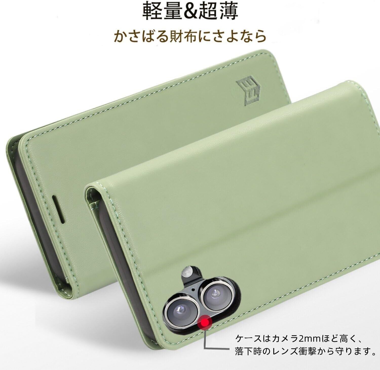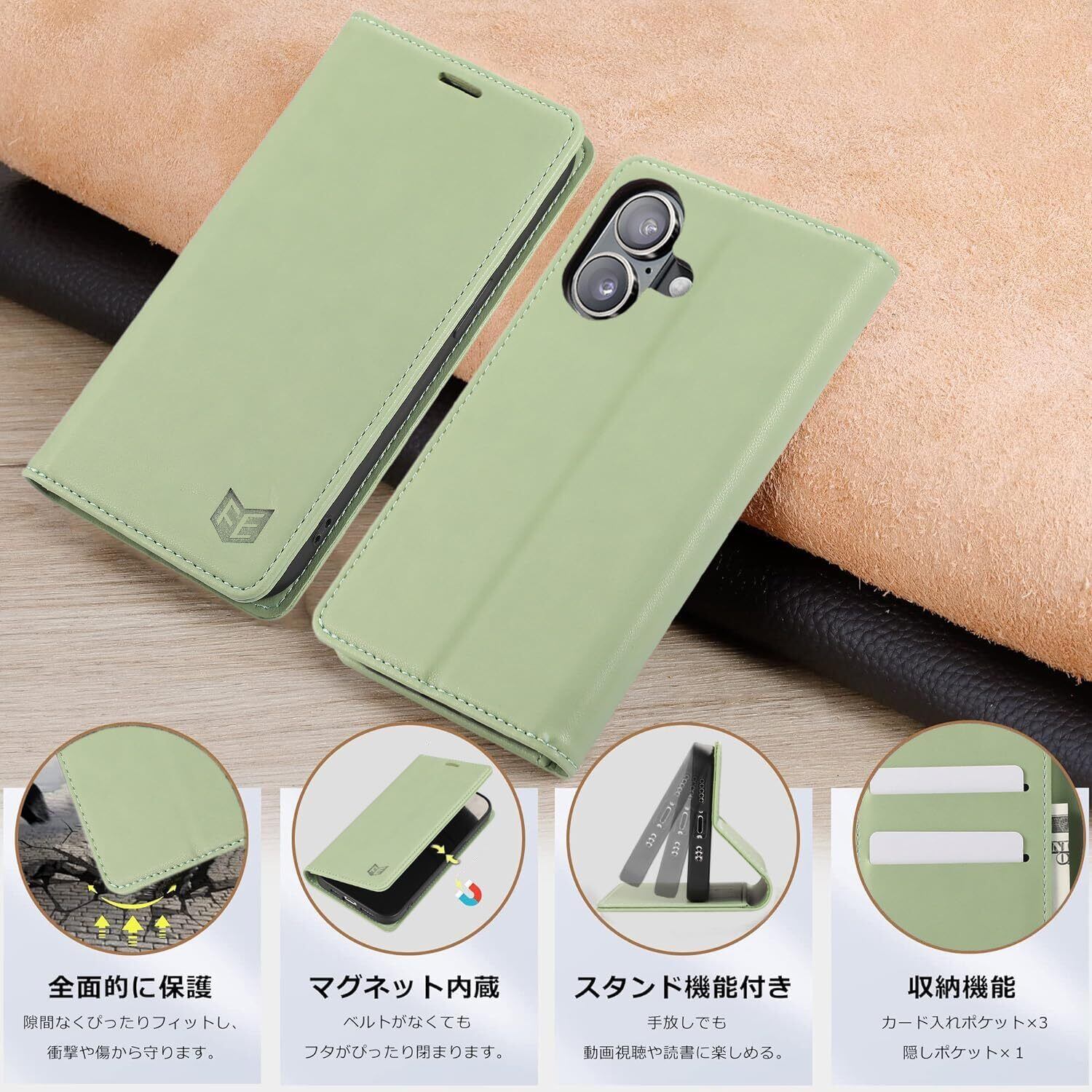 FeeY iphone16ケース 手帳型 Iphone16手帳 ケース 耐衝撃TPU素材カード収納 マグネット内蔵スタンド機能付き アイフォン16携帯カバー全面保護 iPhone 16スマホケース 6.1インチ対応,ライトグリーン/kgB0DGPDVN4K
