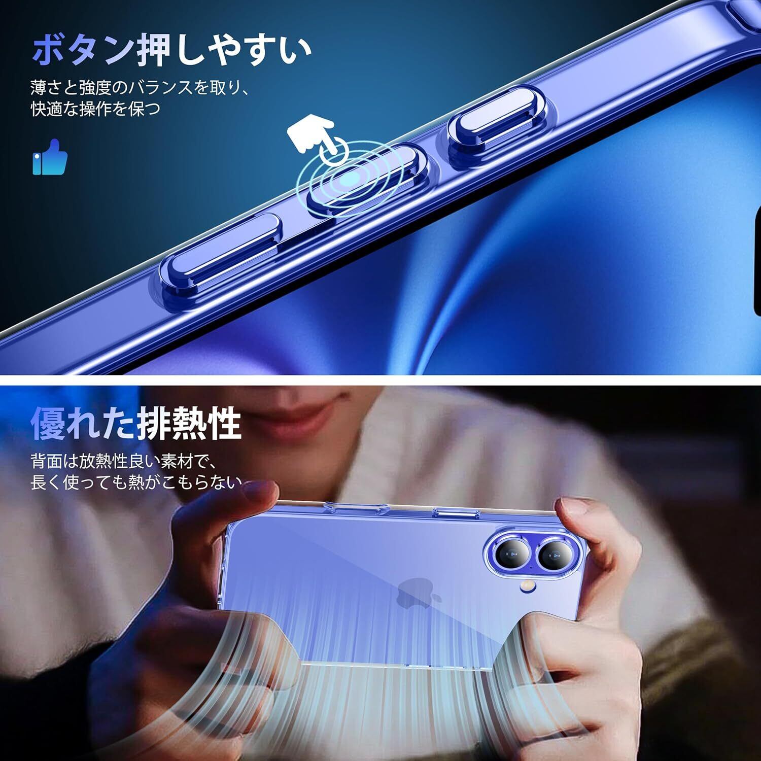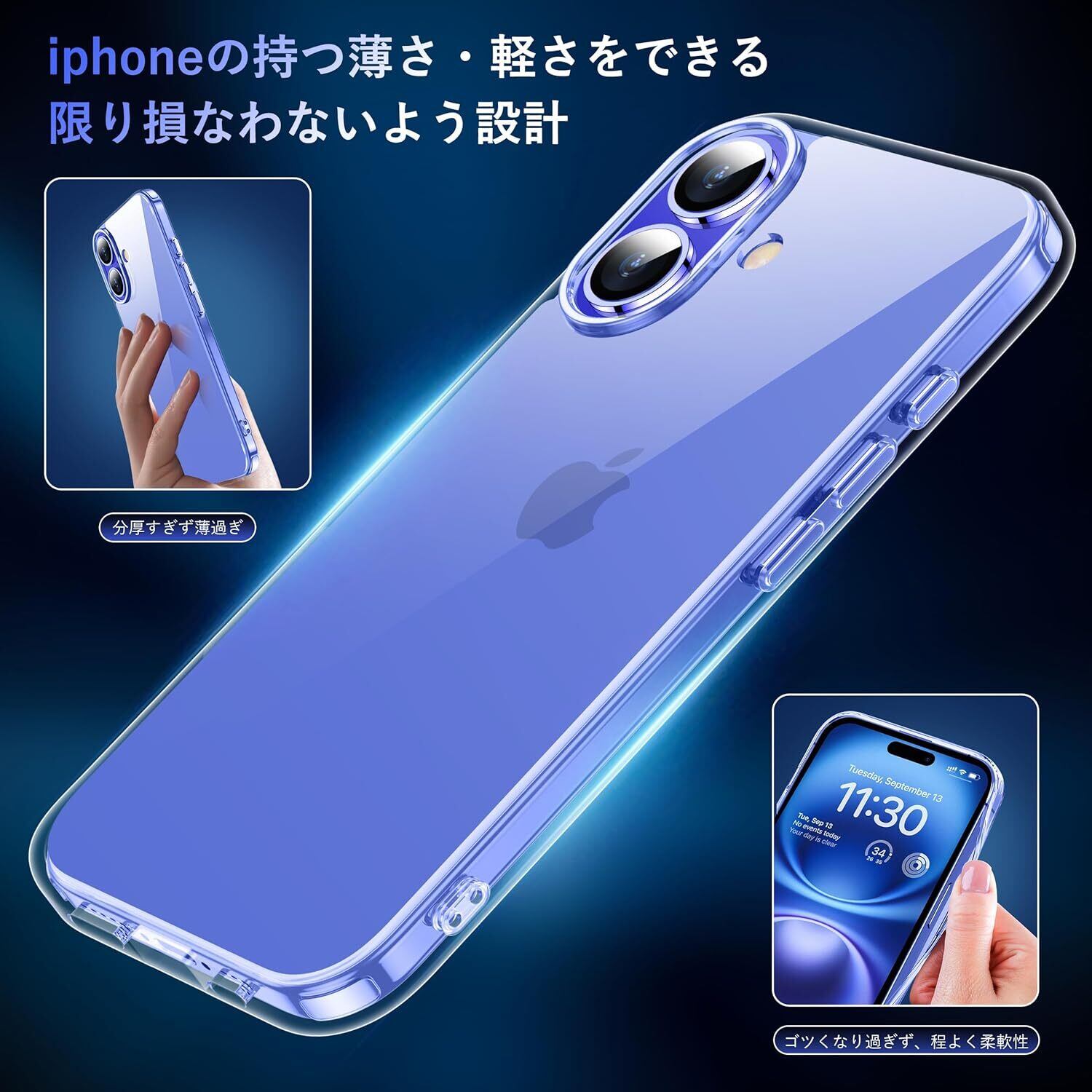 【絶妙バランス・快適操作】クリアケースの保護性能を保ちながら、スマートさを損なわないよう、薄さと強度のバランスを取り、手にフィットする程よい厚みで、快適さが保ち、最適な設計で作り出す。アイフォン16のボタンやレンズなどの細部に基づいて設計された専用スマホケースは、ぴったりとフィットしています。ボタン、カメラ位置も含めて寸法はバッチリでスマホケースをつけていないかのように快適に使用できます。