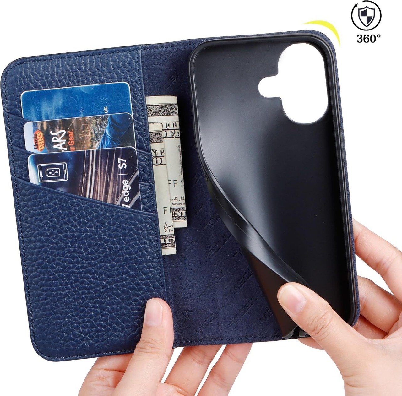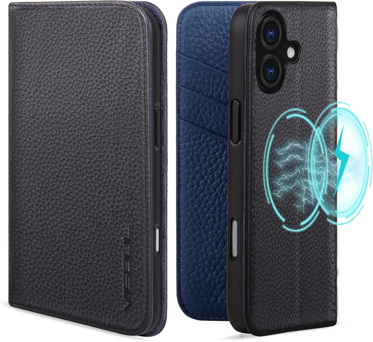VISOUL iPhone16 対応ケース 手帳型 本革 アイフォン16 手帳型ケース MagSafe対応 アイホン16ケース 横置きスタンド機能付き手帳型ケース スマホケース ワイヤレス充電対応レザーケース カード収納 携帯ケース 全面保護 マグネット 柔軟なTPU素材 アイホン16 ネイビー/kgB0D7BQNFYJ
