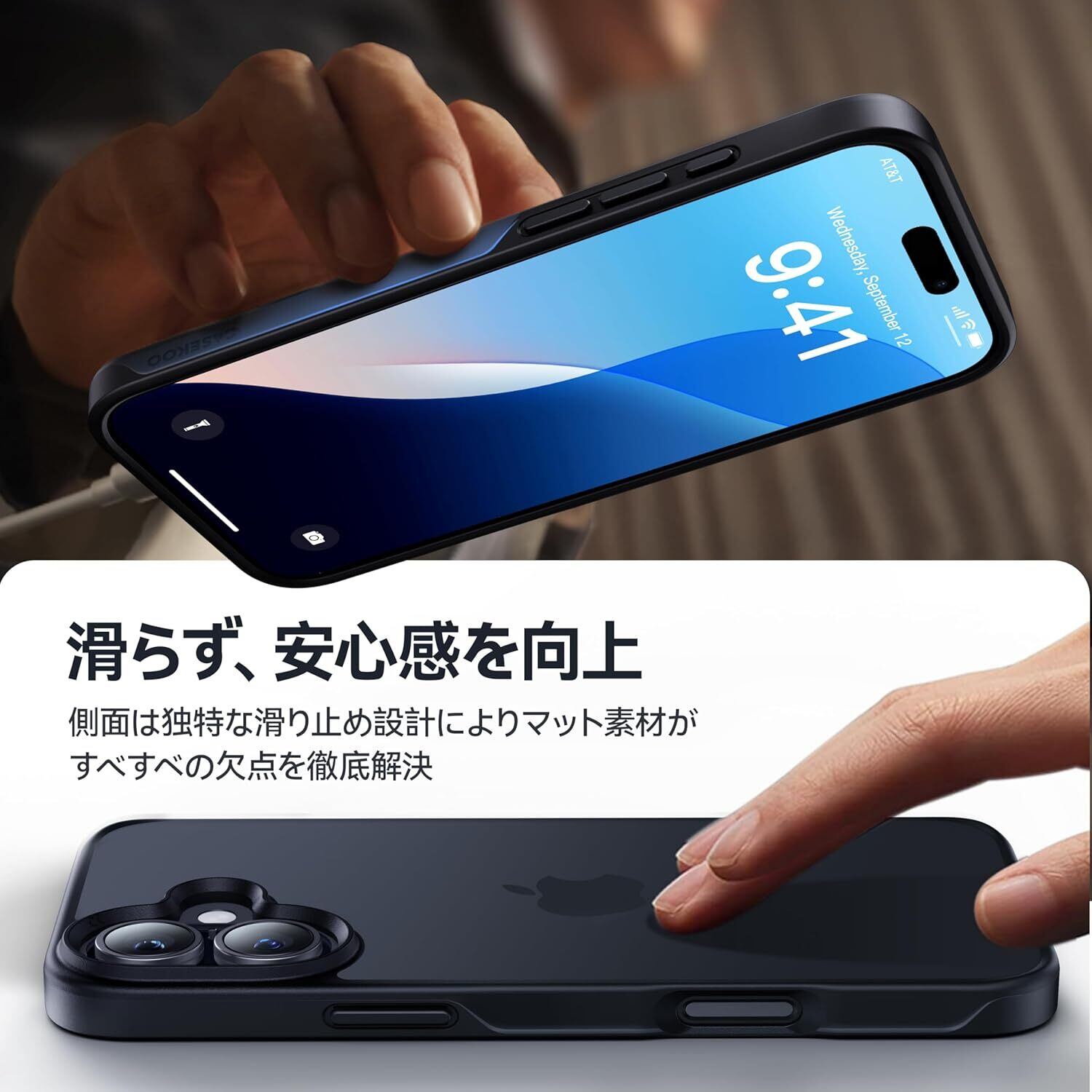 【滑り止め&指紋防止・すごく持ちやすさ】艶消しでマットな質感で手に持った時は背面が滑ることもなくフィットして、サラサラとした触り心地が最高のケース!また、側面の滑り止め設計により、滑りにくさが5倍向上し、持ち心地が従来品より63%改善。手にしっかり馴染み、滑り落ちる心配もない。特許取得済みの撥油塗装で、5年後でもさっぱりした質感を維持し、指紋の付着問題を完全に解消!マットな質感、触り心地、見た目、どれを取っても優勝!