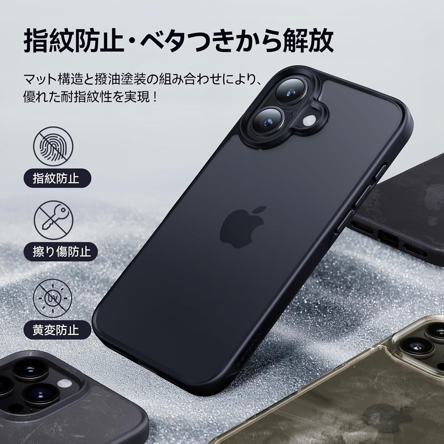 【米軍MIL規格・指紋防止】CASEKOO iPhone 16 用 ケース 耐衝撃 滑り止め 指紋防止 米軍MIL規格 マット仕上げ ストラップホール付き 黄変防止 耐久性 カバー ワイヤレス充電対応 アイフォン 16 用 6.1 インチ ケース(マットブラック)/kgB0D7ZPPCYN
